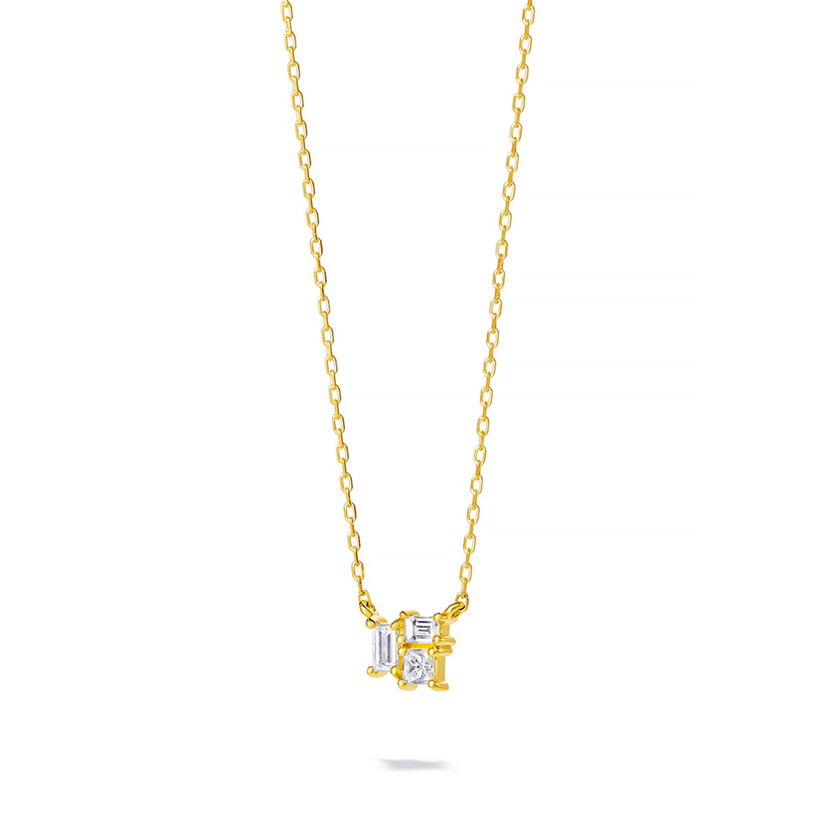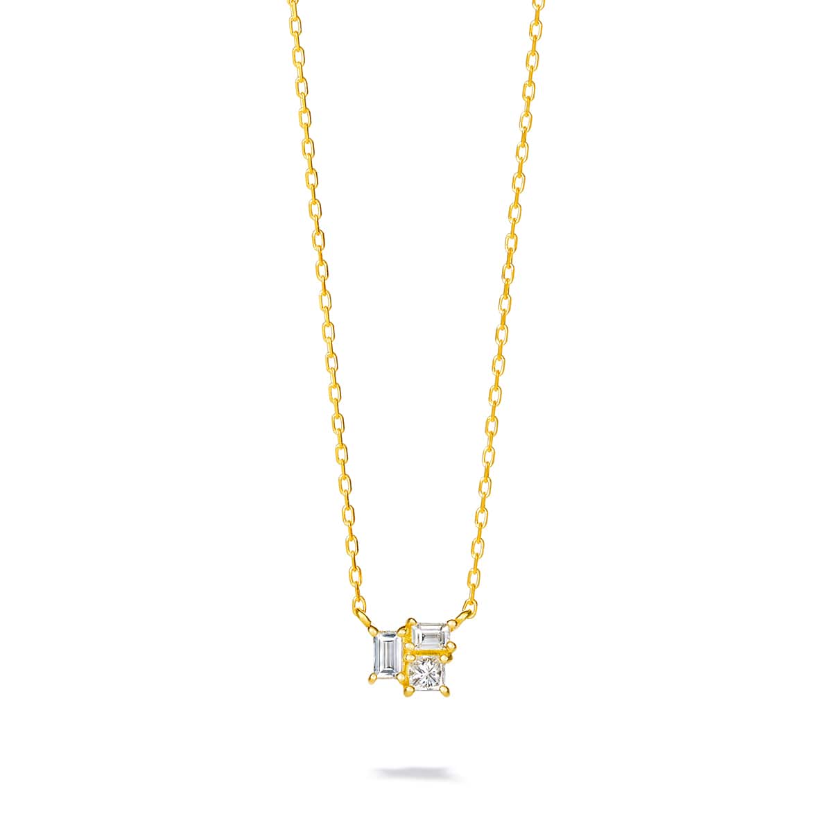 サイズやカットが異なる3ピースのダイヤモンドをセッティングしたミニマルなシルエットのネックレス。