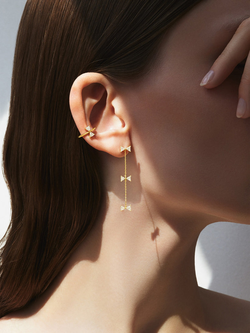 This series is inspired by the scene of multiple kites gracefully swaying in the sky. The minimal design evokes a sensual and refined presence, featuring two trilliant-cut diamonds that radiate a refined brilliance.
