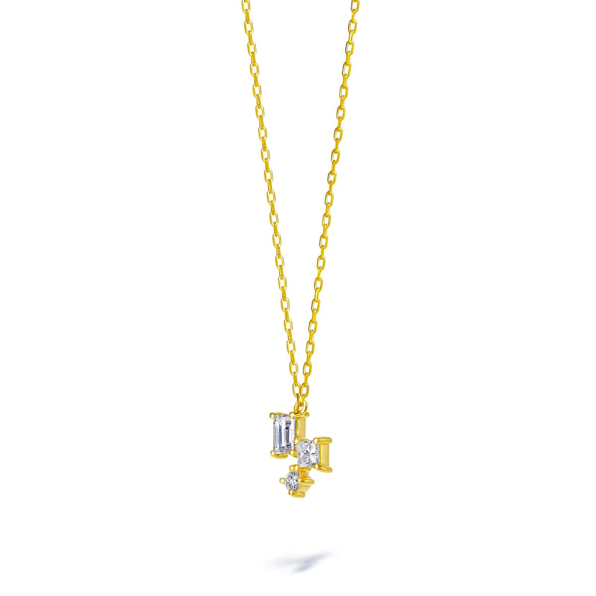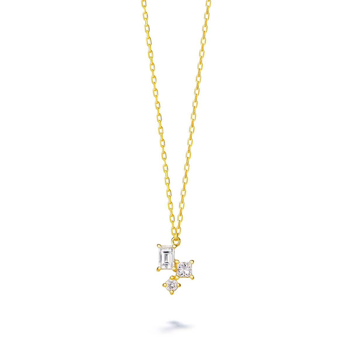 採長方形切割鑽石、公主形切割鑽石、圓形明亮式切割鑽石,凝聚極致的鑽石璀璨光芒,點綴頸肩增添迷人風采。Material:18K黃金/鑽石Product Number:ak2045010100Collection:mosaicCarat:鑽石總重約:0.13 克拉Size:鍊全長約40cm / top長約7.0mm × 寬約5.1mm