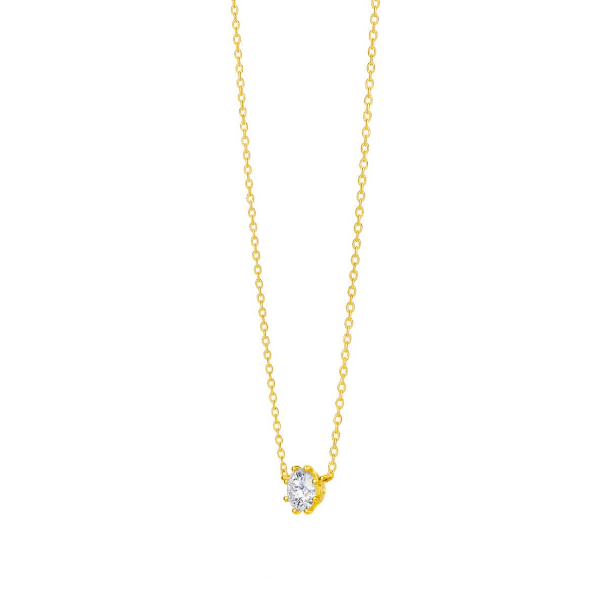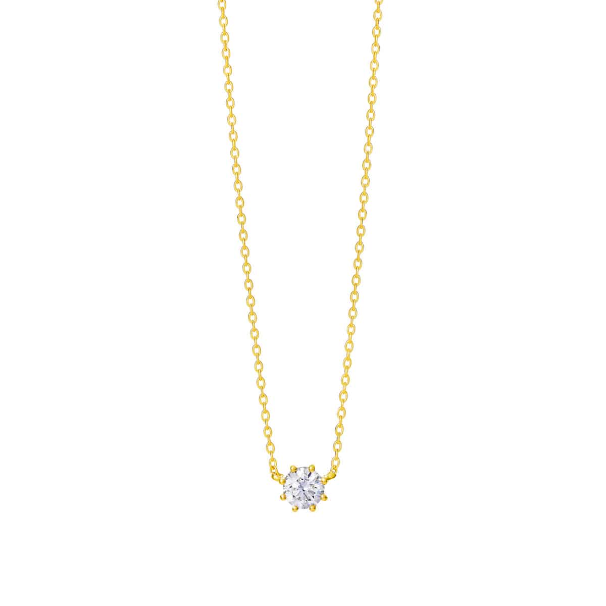 百搭且適合任何年齡層佩戴,永恆珠寶品味之選。Material:18K黃金/鑽石Product Number:vc0196010100Collection:solitaireCarat:鑽石總重約:0.15 克拉Size:鍊全長約40cm / top長約4.0mm × 寬約4.0mm