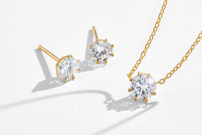 嚴選淨度VS級以上、切工EXCELLENT級以上、顏色H級以上的鑽石。鑲嵌在雕鐫精巧的戒托上,散發璀璨光彩。
